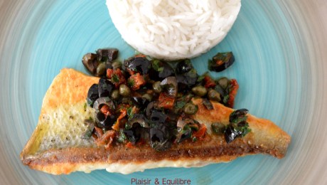 Filets de daurade aux câpres, olives noires et tomates
