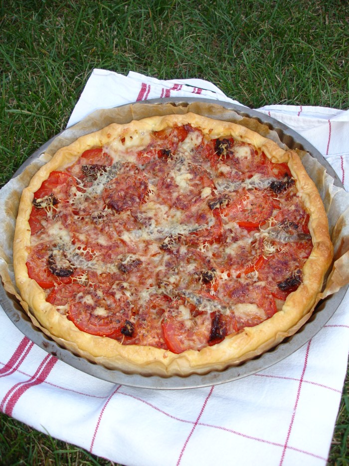Je crois que nous avons toutes (et tous) NOTRE RECETTE de la tarte à la tomate : avec de la moutarde, des olives noires, de la pâte à pain,…