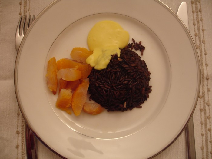 Je vous fais profiter de la première recette que j’ai testée : Riz nerone au haddock et sauce safranée au lait d’amande.