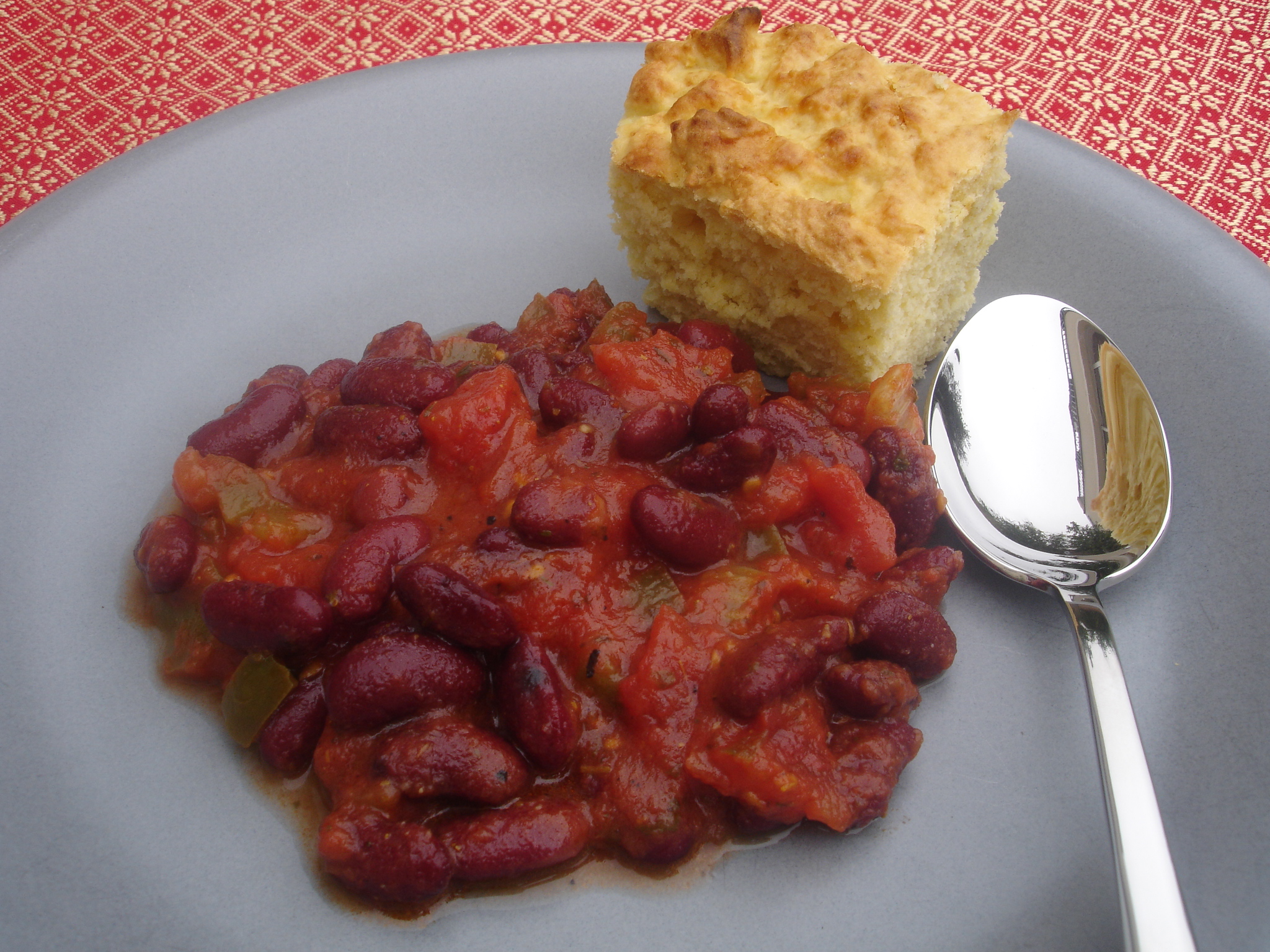 Pour un repas sans viande : le chili sin carne qui s’accompagne parfaitement bien d’un pain de maïs.