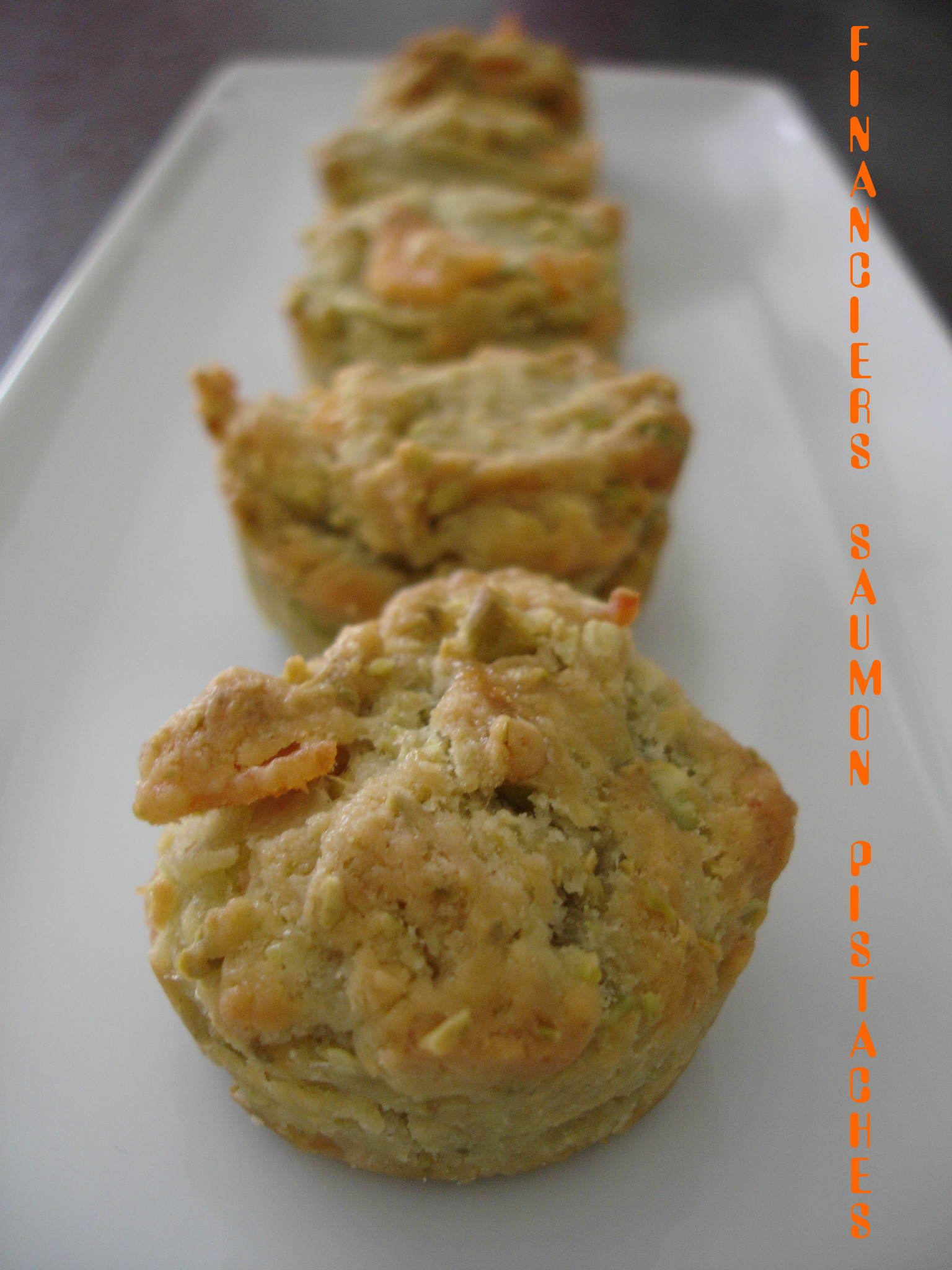 Financiers salés saumon fumé & pistachesCette recette est une improvisation liée à deux belles tranches de saumon fumé qui me restaient dans le frigo. Pas assez pour une entrée pour toute la famille et, même si je les aurais bien dévorées sur un Wasa avec du beurre salé, ça faisait un peu trop pour moi et aussi un peu égoïste, il faut le dire ! Et comme il me restait également des pistaches hachées, je me suis lancée dans ces petites bouchées sur une base de pâte à financier. Cette petite recette express est parfaite pour l’apéro, j’y penserai aussi la prochaine fois pour un pique-nique. C’est coloré, parfumé et ces petites bouchées peuvent se préparer à la dernière minute. Pour la prochaine fournée, je rajouterai sans doute un peu de ciboulette pour les relever un peu plus.