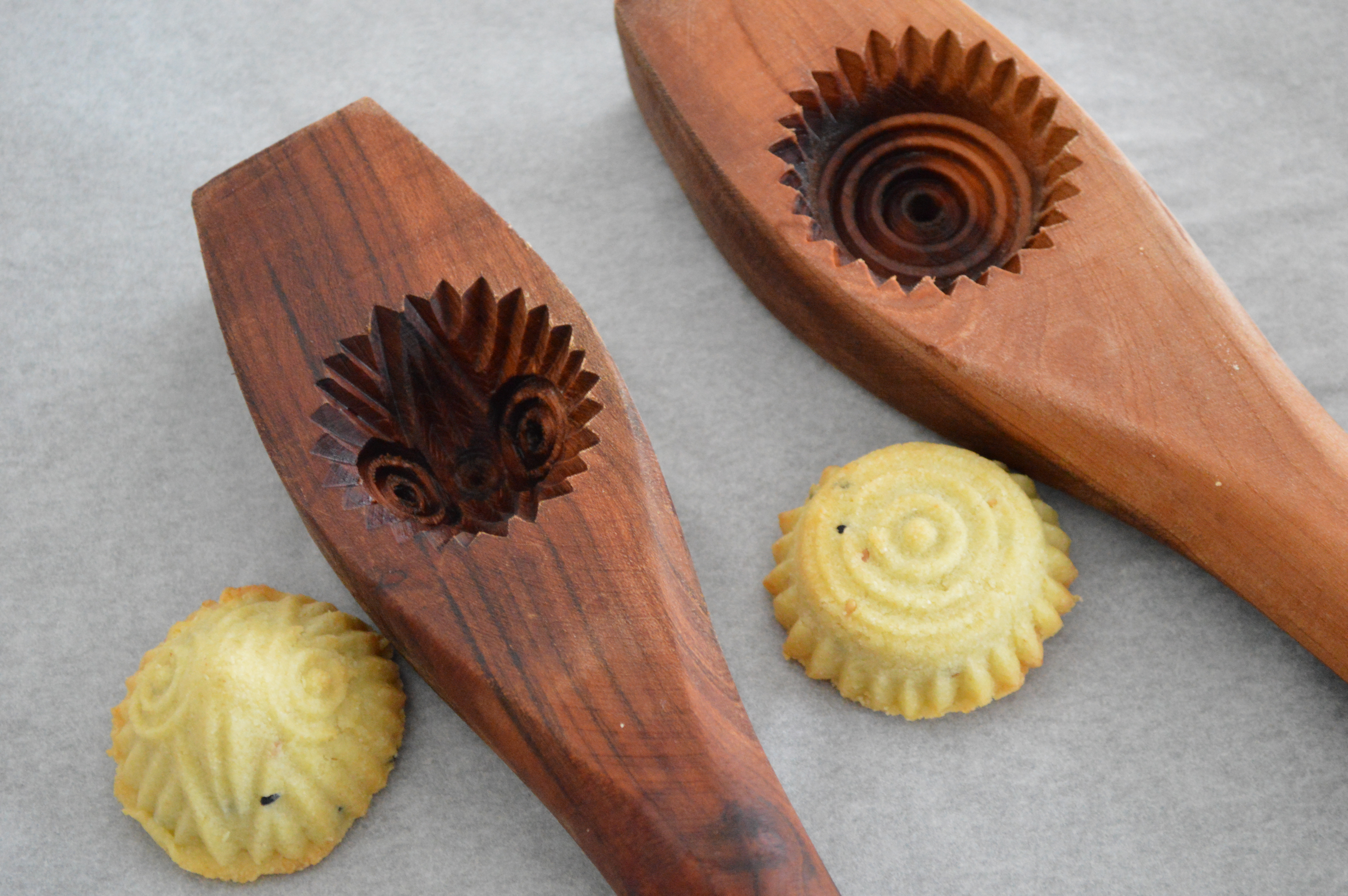 J’étais contente de confectionner ces maamouls moi-même, en général c’est mon amie qui m’en rapporte très gentiment du Liban ou j’en achète chez le traiteur. Voici les fameux beaux moules traditionnels en bois gravé qui forment des motifs sur la pâte :