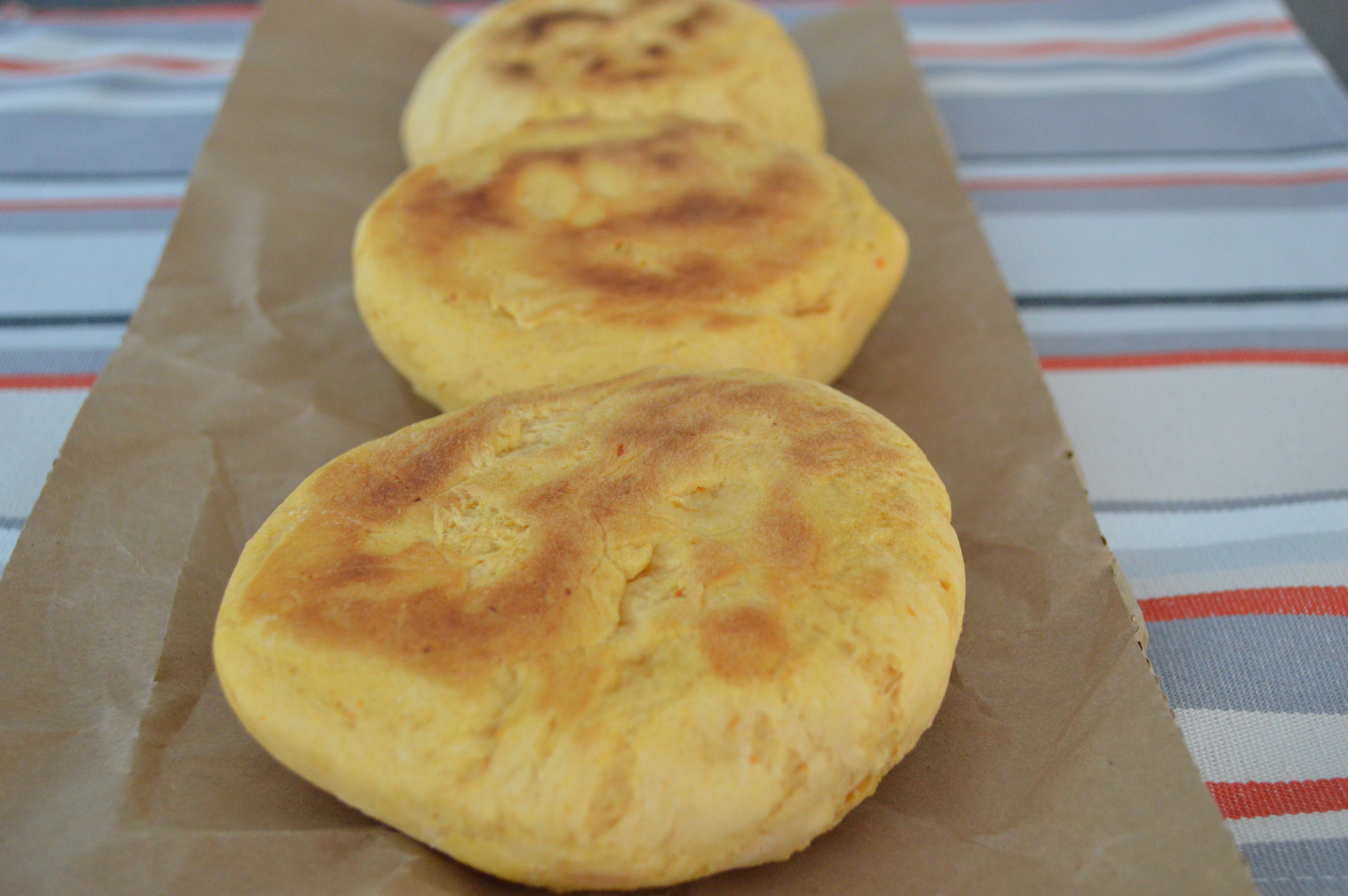 Aplatir légèrement les boules de pâte et les faire cuire dans une poêle anti-adhésive 10-15 minutes environ de chaque côté.