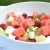Tailler la pastèque, le melon et le concombre mis de côté en fine brunoise (petits cubes).