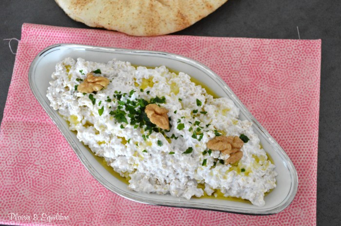 Aujourd’hui ce n’est pas une mais deux recettes que je vous propose. Toutes deux sont des spécialités syriennes car c’est la fête nationale de Syrie ce jour et je m’associe à mon amie Sophie du blog La tendresse en cuisine dans son geste d’amitié pour le monde à travers Cuisiner pour la Paix. J’avais préparé un plat que j’avais déjà eu l’occasion de déguster et que j’avais très envie de manger à nouveau, vous la verrez d’ici quelques minutes. Mais entre temps, j’ai vu apparaître cette recette sur le blog très connu La Cuisine de Bernard qui lui vient directement d’un syrien. Une recette totalement sans cuisson, à base de boulghour, yaourt, noix et menthe. J’ai pour habitude de cuire le boulghour et cette recette où le boulghour ne se cuit pas mais gonfle grâce à l’humidité du yaourt a tout de suite éveillé ma curiosité. Le résultat est vraiment excellent ! Je peux dire que j’ai vraiment adoré ce keshke ! C’est frais et très agréable. Quand j’ai vu la quantité de boulghour, j’ai pensé que ce n’était pas beaucoup pour 6 personnes et j’ai décidé de faire cette quantité pour nous. Et je peux vous dire que ce sont bien les proportions pour 6, cela nous a permis d’en faire pratiquement deux repas mais la prochaine fois j’en ferai la moitié. J’ai juste fait une petite erreur, j’ai ajouté l’intégralité des noix en même temps que le boulghour mais je ne suis pas sûre que cela ait changé grand chose, peut-être un peu moins de croquant. Vous pourrez vous régaler de ce plat en apéritif ou en entrée servi sur du pain plat ou en accompagnement d’une viande grillée.