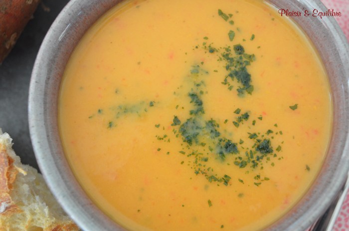 Ta soupe est bien parfumée et réconfortante si tu savais comme il fait froid, la neige ne va pas tarder a tomber. Je n’ai encore jamais tente la soupe de patate douce surtout que mon mari adore.