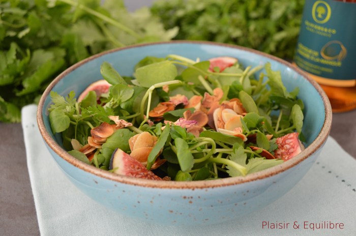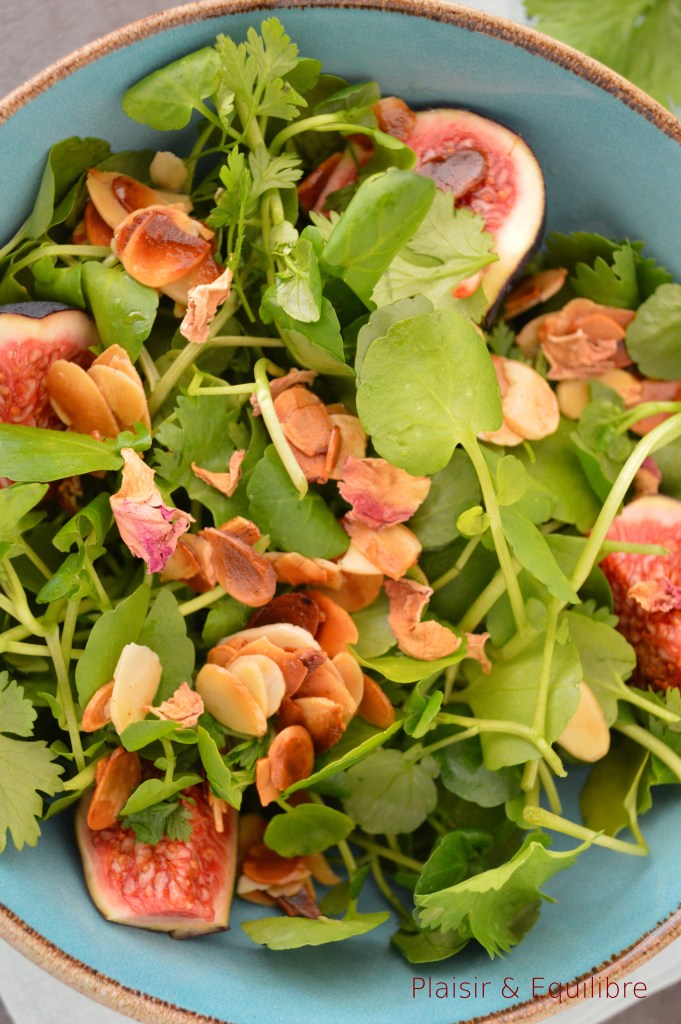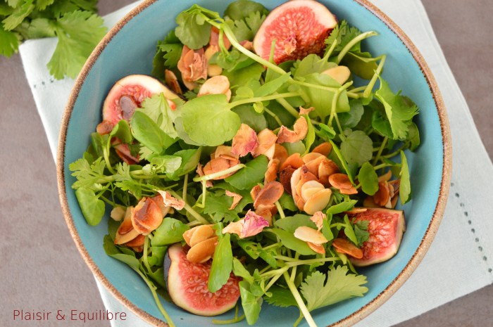 Moi j’ai mon marché. il n’est malheureusement pas bien grand mais il me dépanne tout de même. Cette salade est belle et probablement très bonne. je n’aime pas vraiment les figues crues, même si je peux en manger, mais mon mari lui les adore. Je ne fais jamais de cresson en salade tu vois, soit je le mange comme ça sans vinaigrette avec une tranche de rosbif par exemple soit il part en potage. C’est une idée à creuser. Merci laurence d’offrir cette salade à cuisinons de saison. Bonne journée