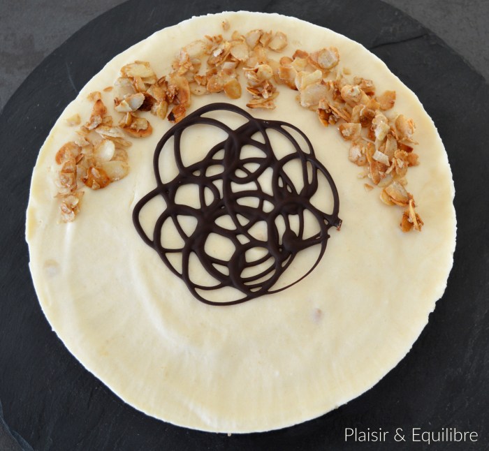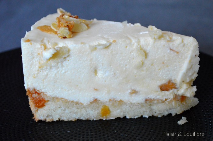 Verser la préparation sur le biscuit aux amandes. Lisser le dessus et laisser prendre au congélateur durant au moins 5 heures.