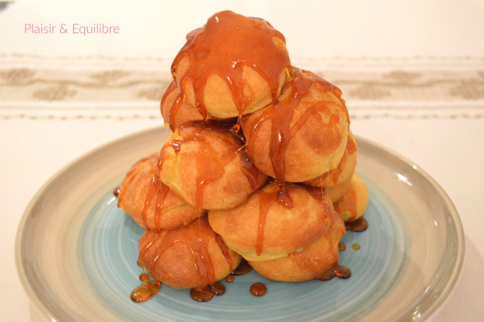 D’ici une semaine c’est la Saint Valentin. Nous ne faisons rien de spécial pour cette occasion mais j’ai pensé que, pour ceux qui voulaient faire un petit repas en amoureux, l’idée d’un dessert vous plairait. J’ai fait ce dessert pour un repas où nous étions tous les deux et où nous avions prévu un menu pour nous faire plaisir. L’idée de la pièce montée en petit format me vient de Anne du blog Happy Cooking. J’adore les pièces montées ! Mais attendre d’être invité à un mariage pour pouvoir s’en régaler, c’est bien trop long, d’autant plus que je suis très souvent déçue car les mariés abandonnent souvent la pièce montée au profit de plusieurs gâteaux. Alors voici une mini pièce montée un peu simplifiée car il n’y a pas de nougatine mais qu’est-ce que c’était bon !!! À déguster sur une assiette avec 2 cuillères !