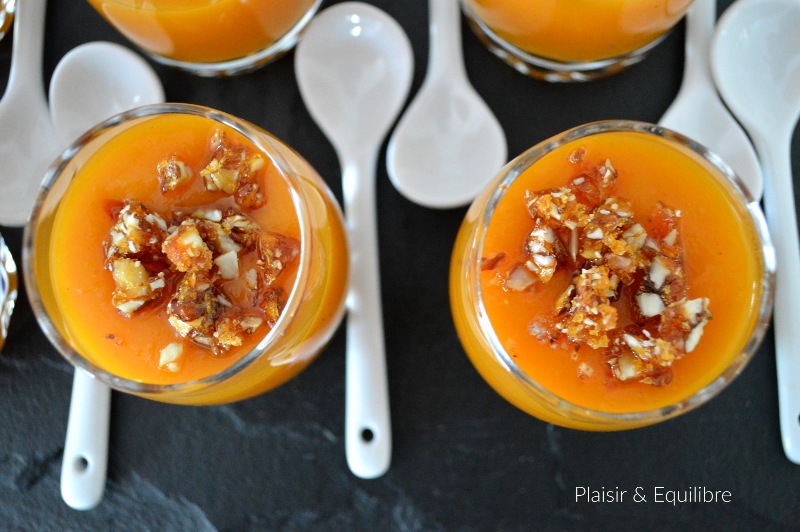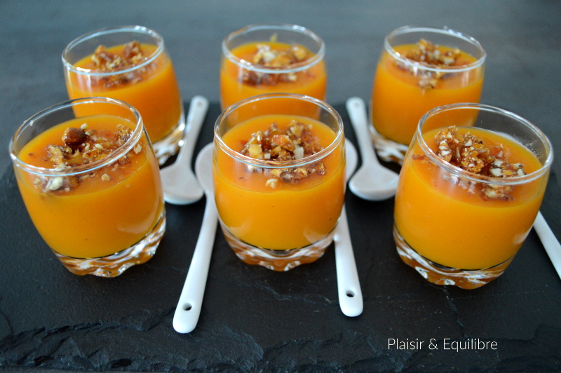 1. J’aime beaucoup ces petites verrines ! je ne suis pas très très courges mais ainsi servies avec les 4 épices et la nougatine je ne laisserais pas ma part ! Bravo c’est une belle idée festive qui devrait plaire.