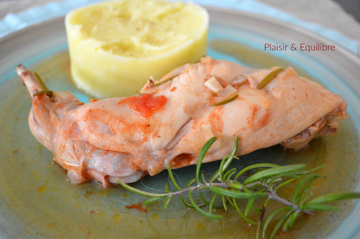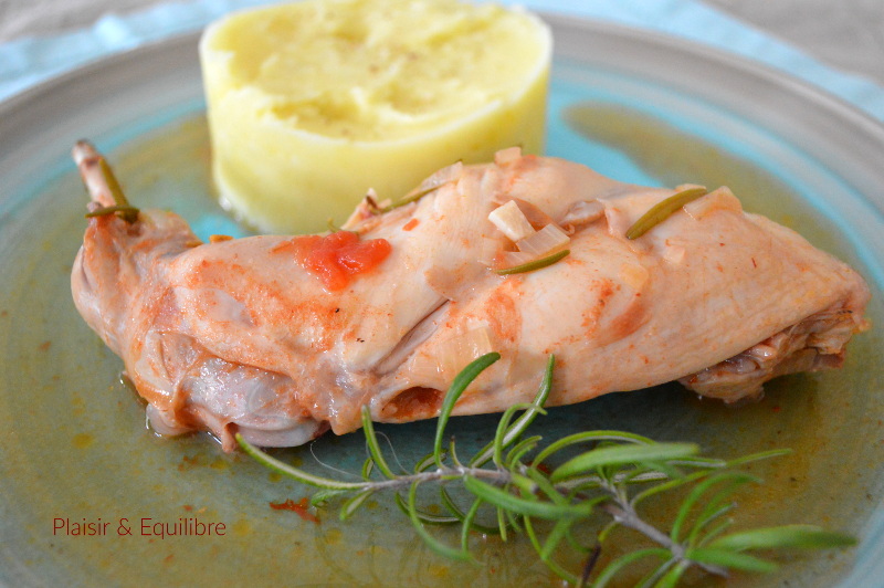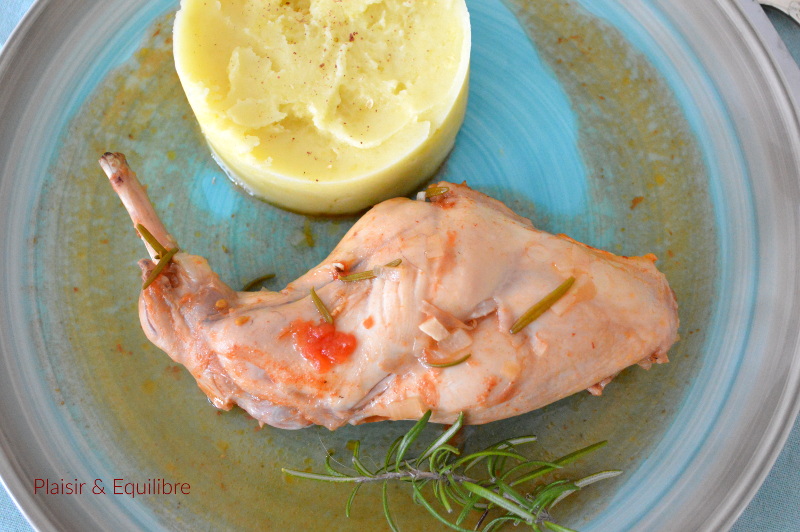 Servir le lapin bien chaud avec la purée. Se régaler !