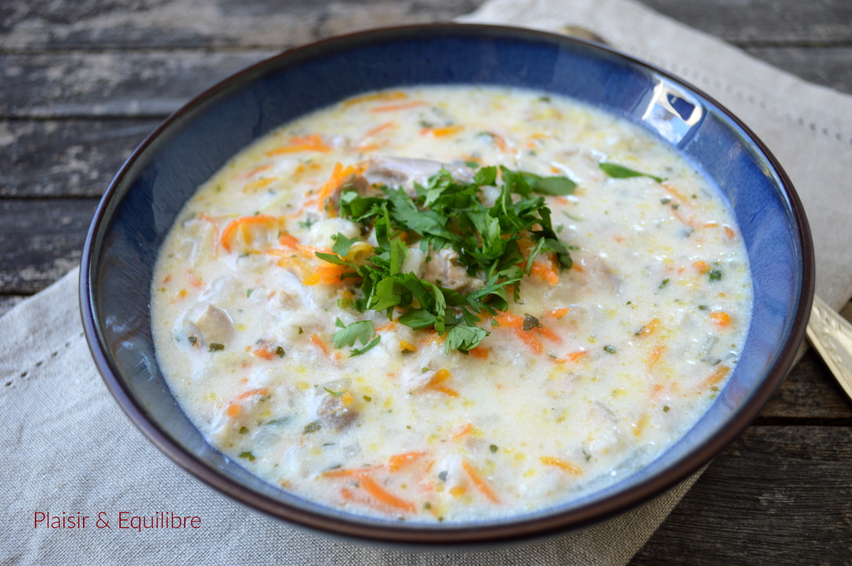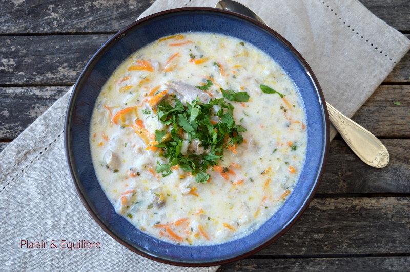 Il ne fait pas très froid en ce moment mais je ne dis jamais non à une bonne soupe rassasiante et dépaysante. Direction l’Iran aujourd’hui avec cette soupe à l’orge et au yaourt appelée Ash-e-Jo. J’ai trouvé différentes versions de cette soupe sur le net, dont plusieurs à la tomate ou avec des lentilles, j’ai donc du mal à confirmer l’authenticité de la recette. Mais quoi qu’il en soit, cette soupe est un vrai régal ! Elle est à base d’orge perlé, de carottes qui cuisent dans le bouillon dans lequel les cuisses de poulet ont cuit. Du persil, de la coriandre et un ajout de yaourt à la grecque en fin de cuisson qui lui donne un côté crémeux et ce petit goût aigre. Cette soupe est nourrissante et convient parfaitement pour un repas du soir. C’est justement le nouveau thème du Foodista Challenge #91, choisi par Chantal du blog Un grain de sable ou de sel, la nouvelle marraine. Le Foodista Challenge est un challenge culinaire amical créé par Stéphanie du blog Cuisine moi un mouton.