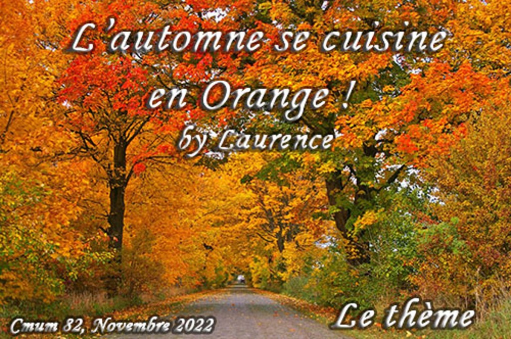 Avec cette recette, je participe à la nouvelle édition du jeu Compile moi un menu (CMUM) dont, les organisatrices sont Nath du blog Une cuisine pour Voozenoo et Viviane du blog Quoi qu’on mange ? et dont je suis la marraine. Le thème est « L’automne se cuisine en Orange ! ».