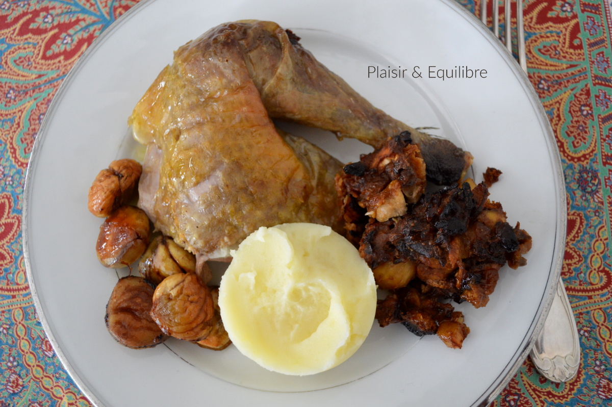 2. Cette farce ne manque pas d’originalité avec ses saveurs de Noël, elle doit apporter beaucoup de parfums à la chair de la pintade. Avec la purée, c’est le régal assuré à n’en pas douter !