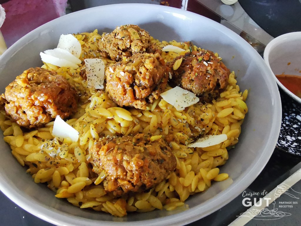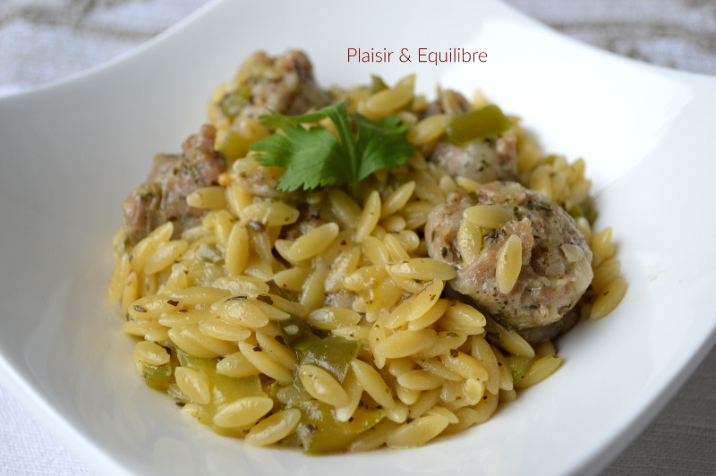 La recette que je partage avec vous est facile, très parfumée et un chouia relevée. Une explosion de saveurs en bouche avec ces saucisses et orzo façon cajun. Peut-être connaissez vous ces pâtes appelées orzo ou langue d’oiseau ? Elles ont la forme de gros grains de riz. Elles sont souvent cuisinées dans le bassin méditerranéen, en salade ou en accompagnement et au Moyen-Orient, en soupes. Ici elles sont cuisinées un peu comme un risotto. Cette recette a l’avantage de n’utiliser que très peu de vaisselle, tout cuit dans la même poêle. Elle est idéale pour les repas de fin de journée où le temps manque pour cuisiner. Le mélange d’épices cajun vient de Louisiane et relève bien ce plat. Ce sont des épices que j’aime beaucoup ! Un peu relevé, je vous conseille d’en mettre 1 cuillère à café et d’en ajouter si vous préférez un peu plus relevé. À la fin, est ajoutée une pincée de zestes de combava qui peuvent être remplacés par des zestes de citron vert. Là aussi, il faut veiller à ne pas en mettre trop, le combava a des arômes puissants. J’ai congelé mon combava ce qui me permet d’en prélever des zestes au fur et à mesure de mes besoins. Le résultat est délicieux et surprenant ! Une recette de Coco du blog Cuisine en folie.