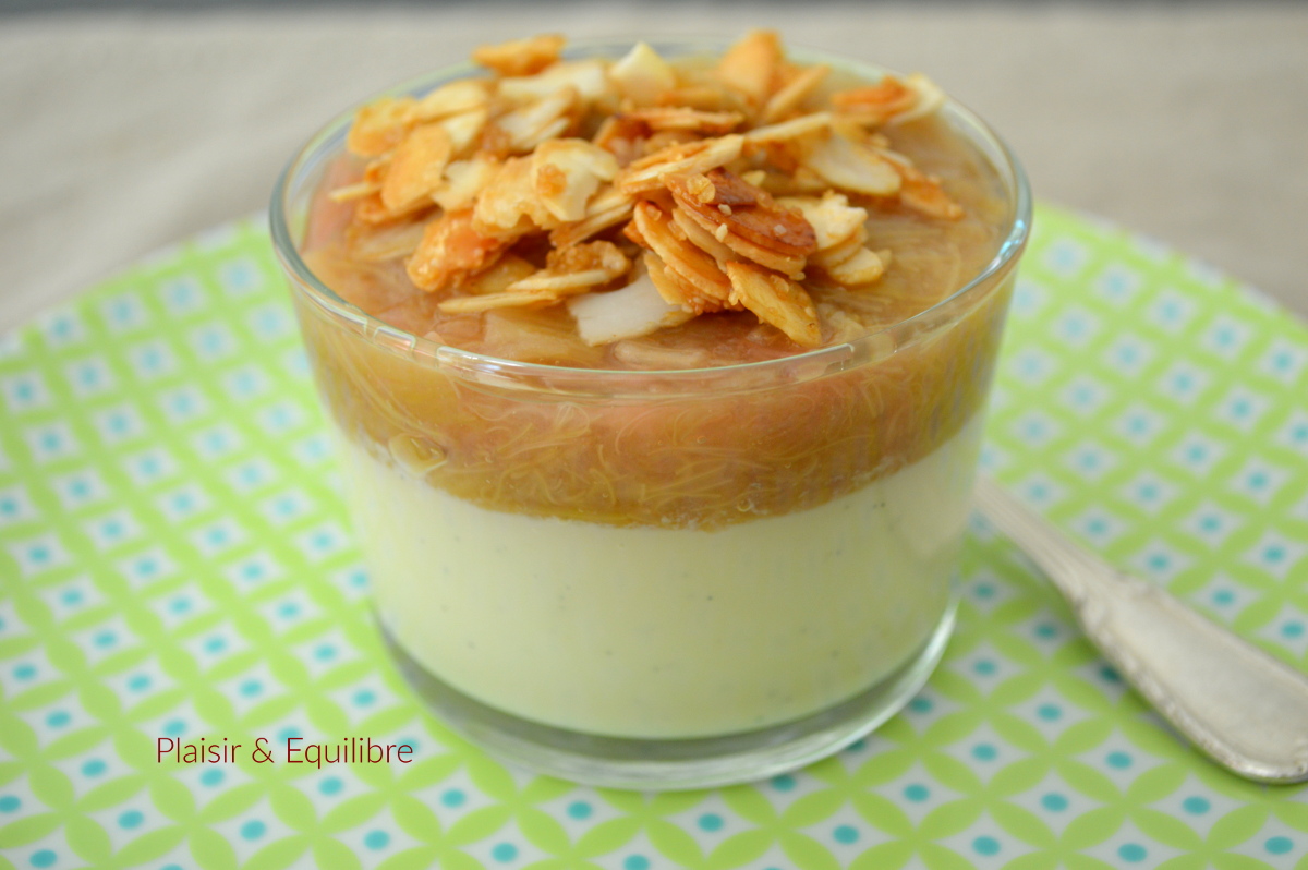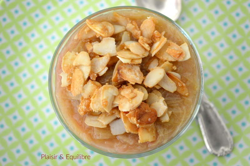 - Laurence du blog Plaisir et équilibre avec verrine pâtissière à la rhubarbe et aux amandes caramélisées.