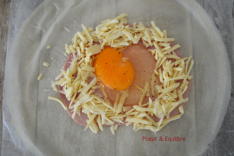 Casser ensuite un œuf entier dans le nid formé par le fromage et poivrer.