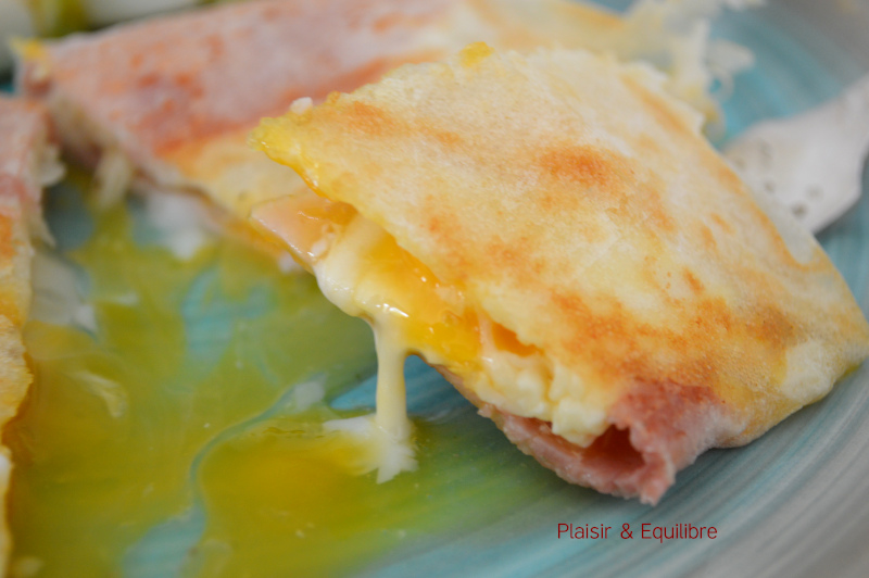 Après mon gâteau au chocolat express au micro-ondes, je reste dans la thématique de la cuisine rapide avec cette brick à l’œuf, jambon et emmental. Une belle découverte que j’ai faite chez Karen du blog Les papilles de Karen. La brick croustille et quel plaisir de manger l’œuf coulant qui se mêle au fromage fondu et au jambon. Un petit repas qui change du croque-monsieur et qui est tout aussi rapide à faire. Cette brick à l’œuf, jambon et emmental est devenue un classique des repas du soir lorsque j’ai peu de temps ou pas envie de cuisiner. J’ai tardé à publier la recette car, le soir je manque de luminosité pour donner de belles photos. Servie avec une petite salade, elle fait un petit repas très sympa ! Il faut compter 1 à 2 bricks par personne selon l’appétit. Karen double les feuilles de brick pour éviter qu’elles se percent. J’ai préféré la faire qu’avec une seule feuille pour être sûre que la brick croustille bien. La cuisson doit être rapide, pour garder un œuf coulant, il faut juste dorer la brick et faire fondre le fromage. J’aurais d’ailleurs pu la dorer un peu plus…
