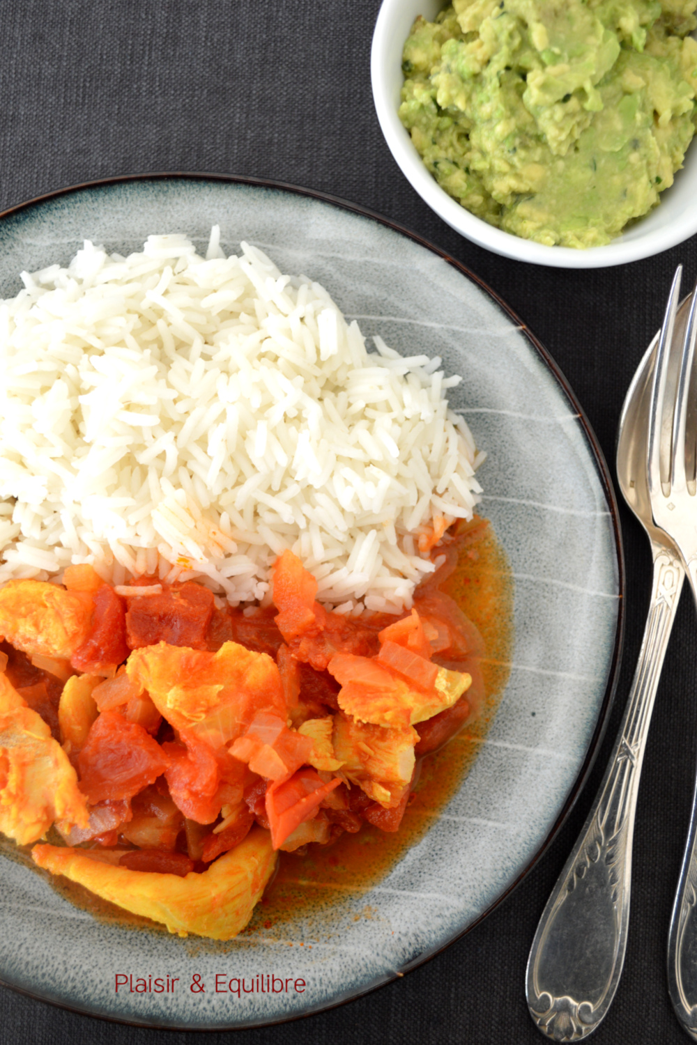 Servir le rougail bien chaud accompagné de riz blanc et du guacamole.