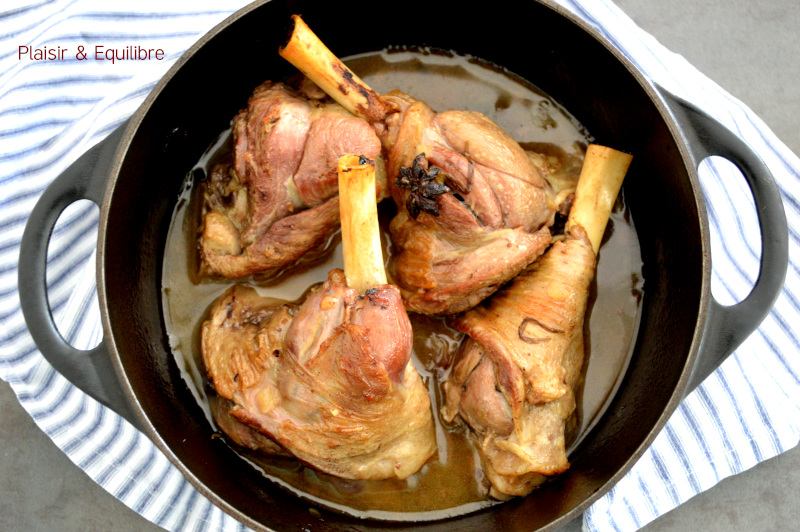 À Pâques, la tradition est de manger de l’agneau. J’ai fait cette recette de souris d’agneau confites au sirop d’érable l’an passé pour notre déjeuner pascal. J’avais repéré cette recette chez Brigitte du blog Les filles, à table !. Je cuisine rarement la souris d’agneau car elle est très grasse mais mes hommes apprécient beaucoup ce morceau et je dois dire que nous nous sommes régalés ! Ma sauce n’est pas sirupeuse, certainement parce que j’ai ajouté du bouillon de viande maison à la place du fond de veau. Elle est par contre délicieuse ! Le sirop d’érable caramélise la souris et la viande est fondante à souhait !