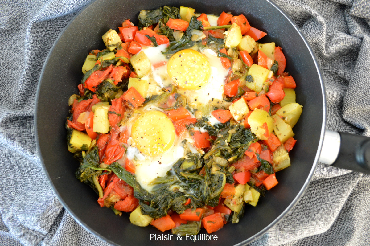 Chakchouka aux épinards, courgettes, poivrons et tomates cerises