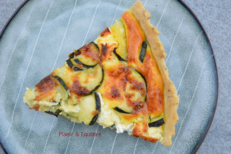Je profite que mon petit dernier soit en vacances chez Mamie et Papi pour cuisiner une tarte aux courgettes, ça m’évite d’avoir des commentaires négatifs ! Les courgettes, surtout si elles viennent du jardin, sont un délice et il y a tellement de préparations différentes pour la cuisiner que je ne m’en lasse pas. Vous trouverez d’ailleurs toutes mes recettes avec de la courgette en cliquant ici. Cette tarte aux courgettes et feta avec une pointe de parmesan est pleine de saveurs, je vous conseille de la manger un peu tiédie, elle n’en sera que meilleure ! Il en restait une part et j’ai pris plaisir à la déguster le lendemain froide pour mon déjeuner. J’ai fait ma pâte brisée à l’huile d’olive, bien plus facile à préparer qu’une pâte brisée au beurre, il faut juste mélanger la pâte avec une spatule et la réunir en boule et elle est prête ! En plus elle est bien croustillante ! Cette tarte aux courgettes et feta est issue du blog de Sonia La cuisine de Boomy avec cette recette je participe au défi anniversaire du groupe Facebook Tests de recettes entre blogueurs et souhaite un bon anniversaire à Sonia !