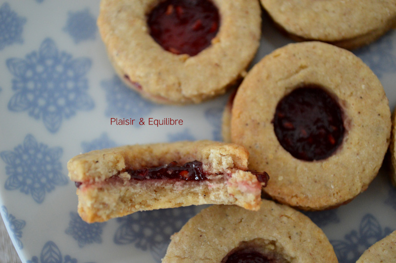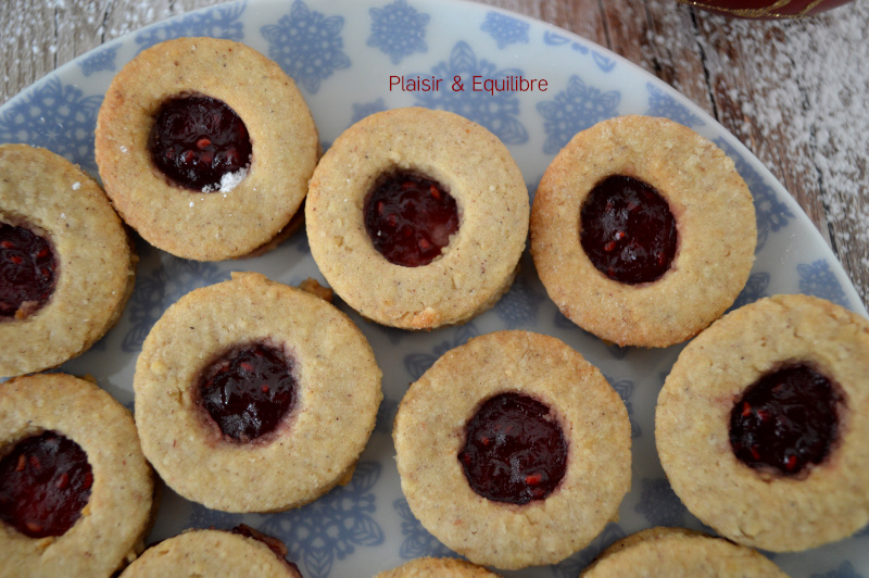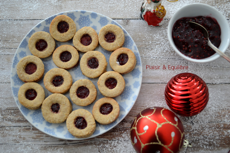 Il y a quelques années, je vous avais proposé des boules de Linz fourrées, ces petits gâteaux étaient excellents mais je n’avais pas retrouvé la texture sablée de la Linzertarte. Cette fois j’ai eu envie de faire des mini tartes de Linz comme bredele. Je ne retrouve plus ma recette de la Linzertarte mais la recette que j’ai choisie est délicieuse ! La seule différence de ces mini tartes de Linz avec la Linzertarte est que la confiture ne cuit pas en même temps que la pâte. J’ai assemblé ces petits ronds de pâte avec de la confiture. Ces petits gâteaux de Noël sont très addictifs. La texture sablée parfumée à la cannelle et aux épices à pain d’épices qui se mêle à la confiture de framboises est un délice ! Ces petits gâteaux sont ma dernière recette de l’année, je vous souhaite donc à tous un JOYEUX NOËL et de très belles fêtes de fin d’année !
