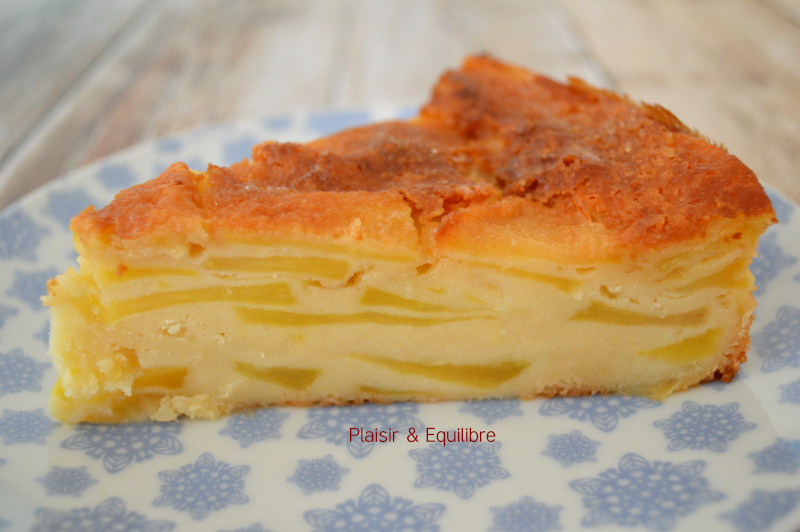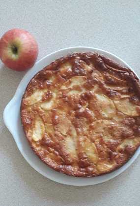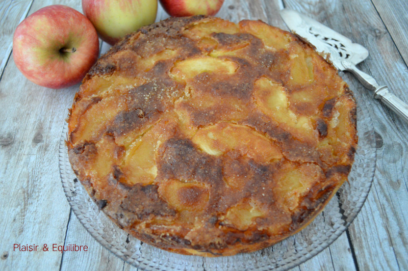 Ma Maman m’a confié il y a déjà un moment la recette du crousti-fondant aux pommes, un dessert qu’elle fait assez souvent. J’ai profité de la venue du cousin de mon tendre pour réaliser ce dessert. J’avais concocté un repas alsacien avec des mini tartes flambées (flammekueche) en apéro, un baeckeoffe avec une salade verte en plat. Comme en Alsace, les desserts aux pommes sont très courants, j’étais tentée de faire un strudel aux pommes mais c’est un peu de boulot et j’avais peur de ne pas arriver à tout faire. J’ai repensé au crousti-fondant aux pommes de ma Maman et je trouvais que ce dessert irait parfaitement dans ce menu alsacien. J’ai pris les photos du crousti-fondant aux pommes avant que nos invités arrivent et comme ce gâteau est assez grand, je pensais qu’il resterait une part pour partager une photo de l’intérieur du gâteau. Mais ce crousti-fondant aux pommes a eu un tel succès que tout a été dévoré ! Mince, il ne me restait plus qu’à le refaire ! J’ai hésité à le refaire en plus petit format pour nous, finalement la gourmandise a été plus forte que la raison et vraiment nous n’avons eu aucun regret de pouvoir à nouveau nous en régaler ! Ce crousti-fondant ressemble un peu à l’invisible aux pommes mais il est tellement meilleur avec sa croûte dorée !