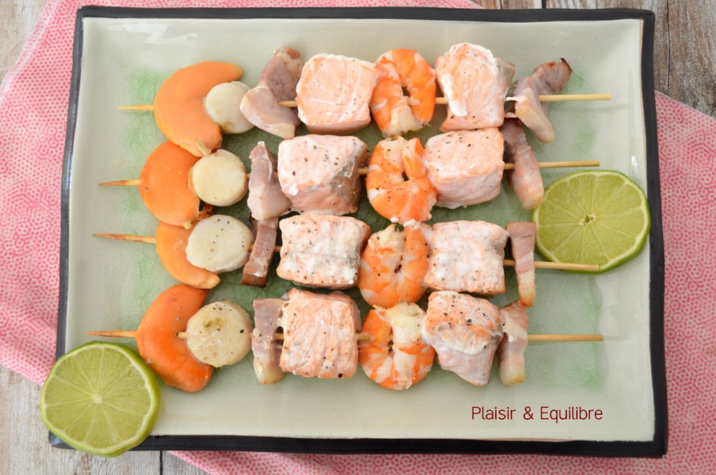 Coucou Laurence. Je n’ai jamais pensé à faire des brochettes de la mer, je suis ravie que tu partages cette recette, ça change !