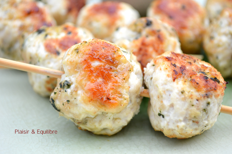Je viens de faire des boulettes de poulet avec du pesto et des tomates séchées, j’ai adoré. Je retiens ton idée et la présentation en brochette fait très estivale.