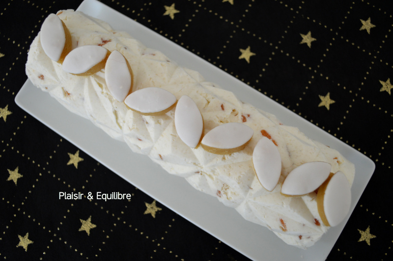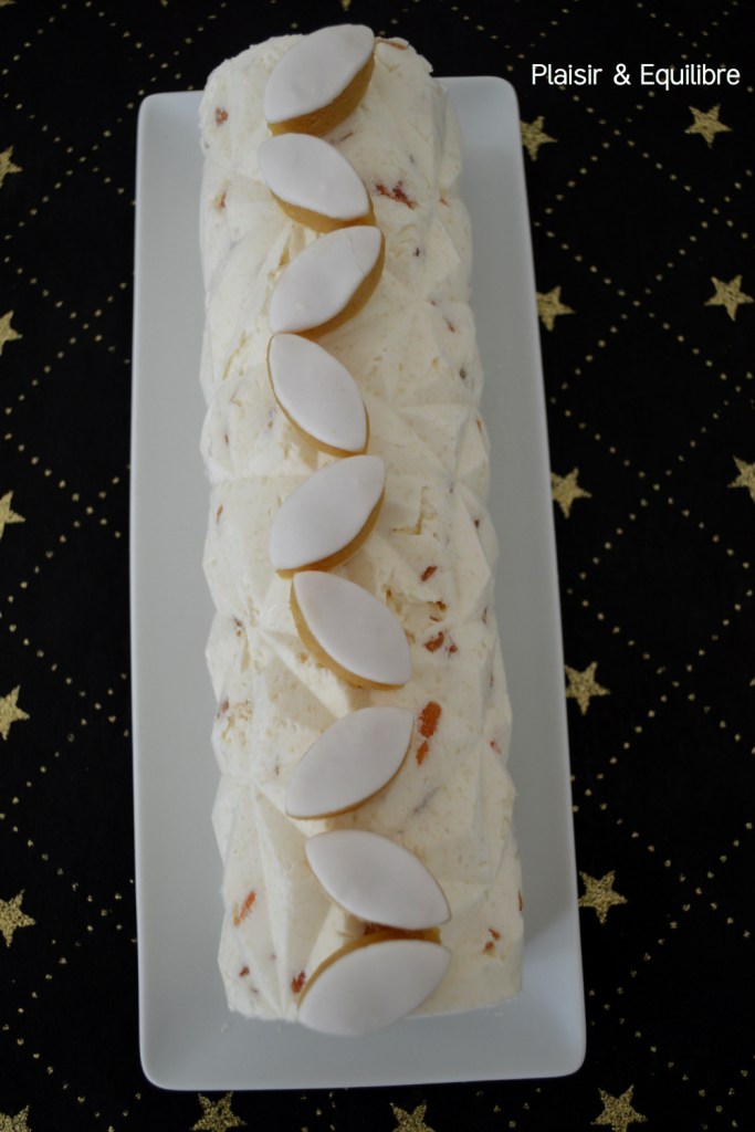 Je vous présente aujourd’hui la bûche de Noël que j’ai faite l’an dernier, une bûche aux calissons. Les calissons d’Aix sont pour moi une gourmandise indissociable de Noël. Retrouver les parfums des calissons , le melon confit, l’orange confite, l’amande amère et l’eau de fleur d’oranger dans cette bûche glacée apporte un résultat délicat et très gourmand. Très simple à préparer, elle a aussi l’avantage de pouvoir être réalisée plusieurs jours à l’avance, ce qui permet de se consacrer sereinement au reste du menu du Réveillon.