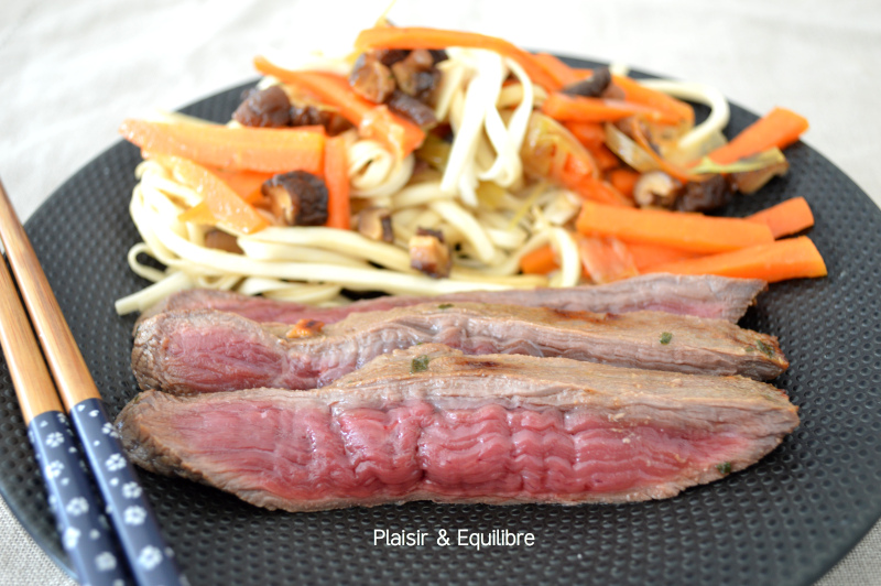 Le tigre qui pleure, aussi appelé larmes du tigre, est un plat emblématique de la cuisine thaïe qui se compose d’une belle pièce de bœuf marinée puis grillée. J’ai fait une version un peu simplifiée n’ayant pas de pâte de tamarin. Il s’accompagne traditionnellement de riz thaï mais cette fois, j’ai choisi de l’accompagner de nouilles asiatiques. Un plat très facile à faire qui va vous faire pleurer tellement la viande est tendre et parfumée !