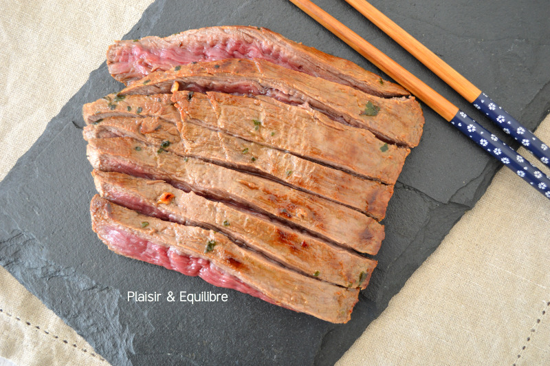 Couper la viande en fines lamelles, la servir nappée de sauce, parsemée de coriandre ciselée.