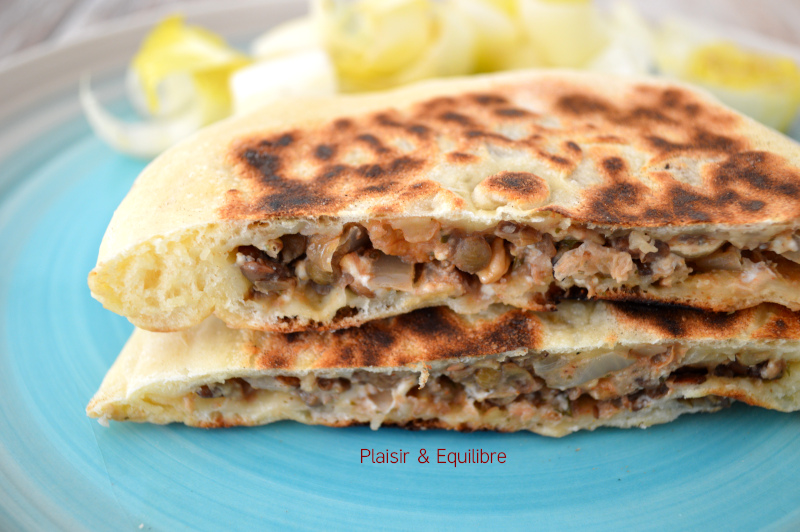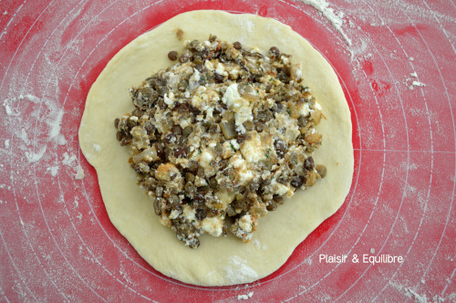 Je vous propose aujourd’hui une recette végétarienne qui ne manque pas de gourmandise, des pitas farcies aux lentilles façon arayes avec des noix, des épices et de la feta. Les arayes, originaires de Moyen-Orient, sont des pains de pitas farcis à la viande, je vous en avais déjà présenté la recette d’origine, ici la viande est remplacée par des lentilles parfumées aux épices, aux noix et à la feta. Cette recette m’avait beaucoup plu lorsque je l’avais aperçue chez Martine du très joli blog Kilomètre-0. Quand Marion du blog Marmotte cuisine… tradi !, nouvelle marraine du Foodista Challenge #129, a annoncé le thème de cette nouvelle édition « Légumineuses réconfortantes », j’ai tout de suite pensé à ces pitas farcies. Ces pitas farcies aux lentilles façon arayes sont délicatement épicées, vous pouvez en ajouter davantage si vous appréciez ces épices du Moyen-Orient. Seul inconvénient, cette recette 100% maison est longue à réaliser, j’ai cru que je n’arriverais pas au bout ! Vous pouvez confectionner la garniture la veille pour que ce soit moins long à faire le jour même.