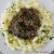 Pendant ce temps, casser les noix et prélever les cerneaux, les couper en morceaux et les toaster dans une poêle chaude à sec quelques minutes.
