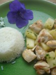 Brochettes de la mer à la vapeur, mangue et patate douce