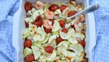 Avec la rentrée, c’est la course, je n’arrête pas ! Alors le soir, j’essaye de cuisiner des petits plats rapides à faire. Ces crevettes à l’ail, feta et légumes au four sont préparées en une dizaine de minutes et ensuite la cuisson se fait toute seule au four en 30 minutes. Elle n’est pas sympa…