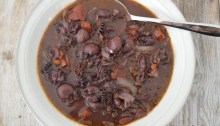 J’ai profité de ce beau week-end de 3 jours pour cuisiner une daube. J’adore ce plat familial dont les odeurs parfument toute la maison. Il ne s’agit pas de la daube traditionnelle au bœuf mais d’une daube de petites seiches à l’anis. Le mélange des petites seiches avec le vin rouge et les lardons fumés…