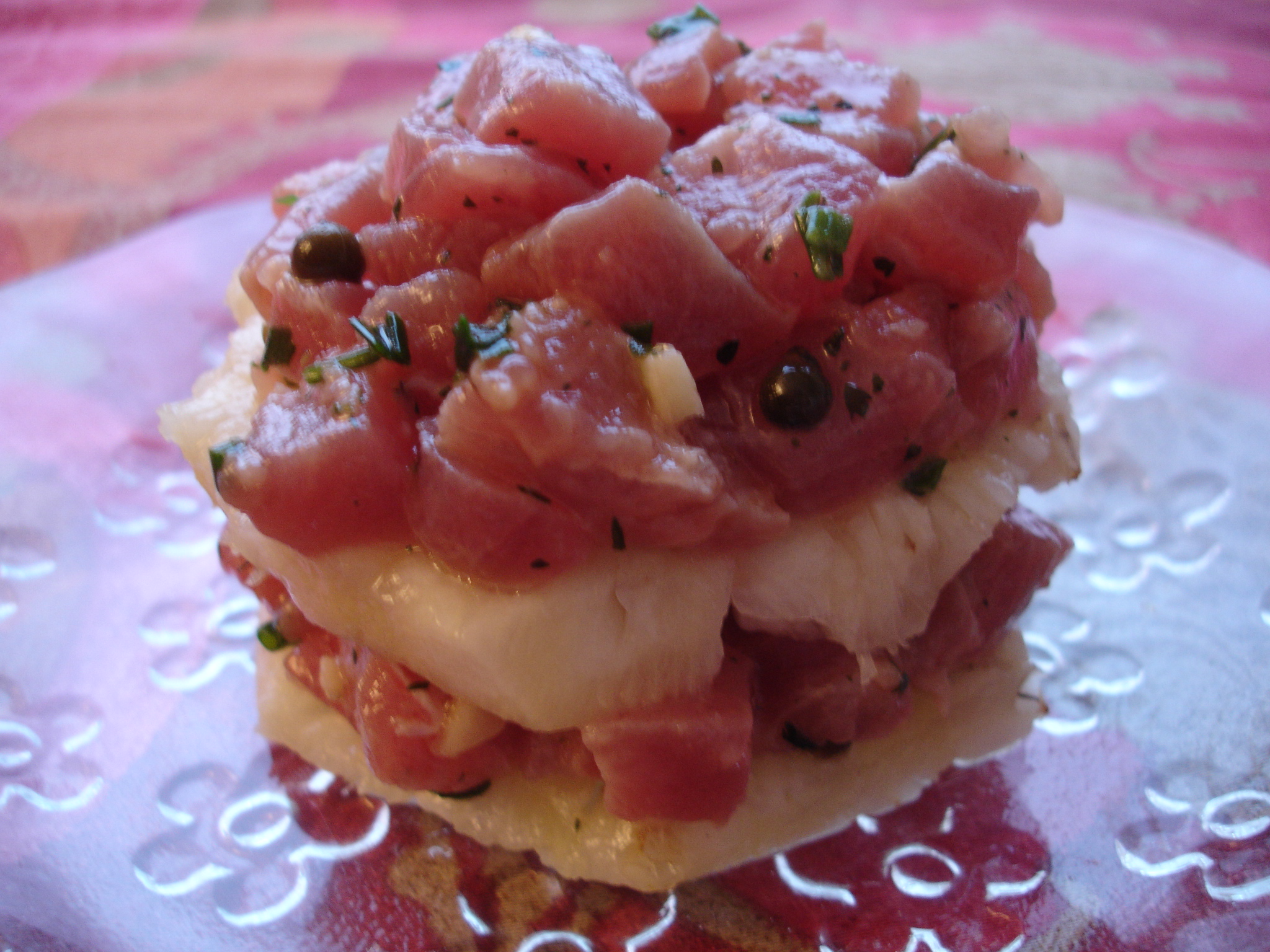 Coupelles de tartare de saumon à la mangue et aux fruits de la passion