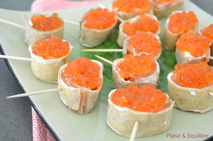 Crêpes roulées apéro au saumon fumé et œufs de saumon