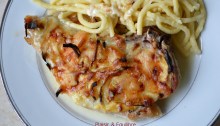 Ce plat est un vrai régal, facile à faire et économique ! Ces côtes de porc sont badigeonnées de moutarde puis cuites dans une sauce au vin blanc et crème et recouvertes de comté qui va gratiner au four.