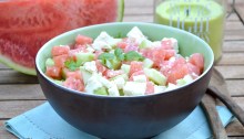 Je suis friande des salades qui mélangent les fruits et les légumes. Je trouve qu’elles sont pleines de fraîcheur et les fruits leur donnent beaucoup de pep’s ! Vous pouvez d’ailleurs retrouver toutes mes petites salades sucrées-salées dans ma colonne de droite sous l’onglet Bec sucré-salé, que ce soit avec de la banane, de l’ananas,…