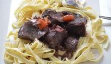 Un week-end j’avais prévu de faire un bœuf bourguignon mais en raison d’un réveil tardif (eh oui il faut compter 3 heures de cuisson quand même !) j’ai fini par congeler le paleron de bœuf que j’avais acheté. Donc même si nous sommes au printemps j’ai fini par me décider à faire ce fameux bœuf…