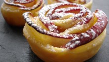 J’avais déjà aperçu ces magnifiques roses de pommes feuilletées sur d’autres blogs mais les pom’roses en feuilleté du blog de Claudine que j’apprécie beaucoup, La Cuisine de Gut, de par leur joli nom et leurs magnifiques photos m’ont fait complètement craquer ! Un succès tout à fait mérité pour ces petites gourmandises, elles sont belles…
